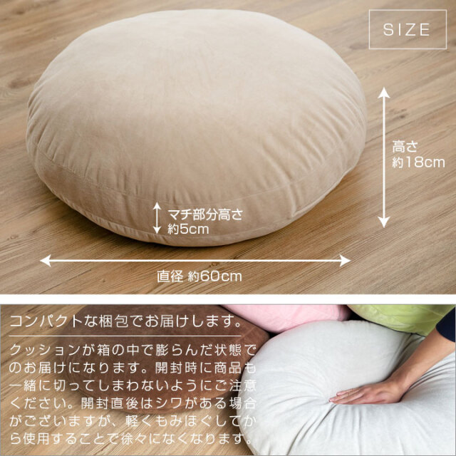 TOPクッション クッション もちもち 直径60cm おしゃれ 大きい 座布団 マイクロファイバー リビング 在宅ワーク 軽量 フロアクッション 20a027 価格: ¥1,950 (税込) 販売期間: カラー: 選択してください 【1~3営業日以内に発送予定】ブラウン 【1~3営業日以内に発送予定】ベージュ 【1~3営業日以内に発送予定】グレー 【1~3営業日以内に発送予定】グリーン 【1~3営業日以内に発送予定】ピンク 【1~3営業日以内に発送予定】アイボリー 【1~3営業日以内に発送予定】ブルー 数量: 個 カラー在庫【1~3営業日以内に発送予定】ブラウン○【1~3営業日以内に発送予定】ベージュ○【1~3営業日以内に発送予定】グレー○【1~3営業日以内に発送予定】グリーン○【1~3営業日以内に発送予定】ピンク○【1~3営業日以内に発送予定】アイボリー○【1~3営業日以内に発送予定】ブルー○ 返品についての詳細はこちら ※ご使用のモニター、デバイス環境により、色の見え方が異なる場合がございます。※また、生産ロットにより同品番でも色味が異なる場合がございますので、ご了承ください。 商品サイズ・組成について (もちもちクッション) アイテム 寸法 組成 もちもちクッション 直径:約60cm 高さ:約18cm マチ部分高さ約5cm 側生地ポリエステル100%、中綿 ポリエステル100% 製造国 :中国