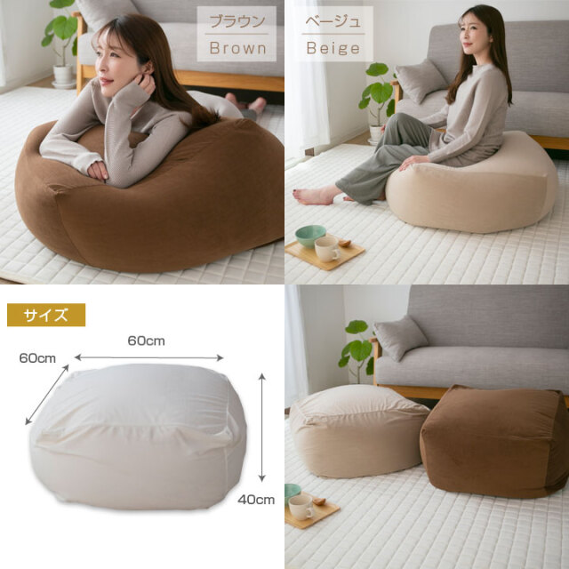 TOPクッション ビーズクッション ビーズクッション クッション Lサイズ もちもちマイクロベロア カバー付き 60×60×40cm ビーズ ソファ 椅子 22A032 価格: ¥6,980 (税込) 販売期間: カラー: 選択してください 【1~3営業日以内に発送予定】ベージュ 【1~3営業日以内に発送予定】ブラウン 【1~3営業日以内に発送予定】グリーン 【1~3営業日以内に発送予定】グレー 【1~3営業日以内に発送予定】アイボリー 【1~3営業日以内に発送予定】ピンク 数量: 個 カラー在庫【1~3営業日以内に発送予定】ベージュ○【1~3営業日以内に発送予定】ブラウン○【1~3営業日以内に発送予定】グリーン○【1~3営業日以内に発送予定】グレー○【1~3営業日以内に発送予定】アイボリー○【1~3営業日以内に発送予定】ピンク○ 返品についての詳細はこちら ※ご使用のモニター、デバイス環境により、色の見え方が異なる場合がございます。※また、生産ロットにより同品番でも色味が異なる場合がございますので、ご了承ください。 商品サイズ・組成について (ビーズクッション) アイテム 寸法 組成 ビーズクッション ビーズクッション本体 約60×60×40cmカバー 約60×60×40cm ビーズクッション本体 側生地 ポリエステル100% 充填物 ポリスチレン 3.5kg カバー ポリエステル100% 製造国 :中国