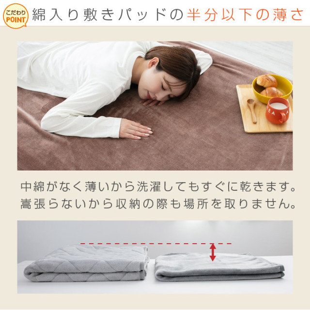 TOP布団カバー ボックスシーツ 敷きパッド シングル 軽量 薄手 暖かい あったか 速乾 洗える セミダブル ダブル 100×200 120×200 140×200 秋 冬 冬用 えらべる3サイズ 敷毛布 敷きパット シーツ あったかシーツ 中綿なし 毛布 フランネル 25a020 価格: ¥1,180 (税込) ~ ¥1,780 (税込) 販売期間: サイズ: 選択してください シングル セミダブル ダブル カラー: 選択してください 【2~5営業日以内に発送予定】カフェモカ 【2~5営業日以内に発送予定】グレージュ 【2~5営業日以内に発送予定】グレー 【2~5営業日以内に発送予定】アッシュグレー 【2~5営業日以内に発送予定】ブラウン 【2~5営業日以内に発送予定】 スモーキーピンク 価格と在庫を一覧で確認する 価格: - 数量: 個 サイズカラー価格在庫シングル【2~5営業日以内に発送予定】カフェモカ¥1,180(税込)×【2~5営業日以内に発送予定】グレージュ¥1,180(税込)×【2~5営業日以内に発送予定】グレー¥1,180(税込)×【2~5営業日以内に発送予定】アッシュグレー¥1,180(税込)×【2~5営業日以内に発送予定】ブラウン¥1,180(税込)×【2~5営業日以内に発送予定】 スモーキーピンク¥1,180(税込)○セミダブル【2~5営業日以内に発送予定】カフェモカ¥1,480(税込)×【2~5営業日以内に発送予定】グレージュ¥1,480(税込)○【2~5営業日以内に発送予定】グレー¥1,480(税込)○【2~5営業日以内に発送予定】アッシュグレー¥1,480(税込)○【2~5営業日以内に発送予定】ブラウン¥1,480(税込)○【2~5営業日以内に発送予定】 スモーキーピンク¥1,480(税込)○ダブル【2~5営業日以内に発送予定】カフェモカ¥1,780(税込)×【2~5営業日以内に発送予定】グレージュ¥1,780(税込)○【2~5営業日以内に発送予定】グレー¥1,780(税込)○【2~5営業日以内に発送予定】アッシュグレー¥1,780(税込)○【2~5営業日以内に発送予定】ブラウン¥1,780(税込)○【2~5営業日以内に発送予定】 スモーキーピンク¥1,780(税込)○ 返品についての詳細はこちら ※ご使用のモニター、デバイス環境により、色の見え方が異なる場合がございます。※また、生産ロットにより同品番でも色味が異なる場合がございますので、ご了承ください。 商品サイズ・組成について アイテム 寸法 生地 敷きパッド シングル約100×200cm セミダブル約120×200cm ダブル約140×200cm ポリエステル 100% 製造国 :中国