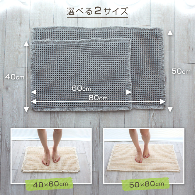 TOP日用品 バスマット バスマット ワッフル 50×80cm 足拭きマット お風呂マット 浴室マット 風呂マット 吸水速乾 おしゃれ かわいい 洗濯可 北欧 価格: ¥1,480 (税込) 販売期間: カラー: 選択してください 【2~5営業日以内に発送予定】 アイボリー 【2~5営業日以内に発送予定】ベージュ 【2~5営業日以内に発送予定】グレー 【2~5営業日以内に発送予定】グレージュ 数量: 個 カラー在庫【2~5営業日以内に発送予定】 アイボリー○【2~5営業日以内に発送予定】ベージュ○【2~5営業日以内に発送予定】グレー○【2~5営業日以内に発送予定】グレージュ○ 返品についての詳細はこちら ※ご使用のモニター、デバイス環境により、色の見え方が異なる場合がございます。※また、生産ロットにより同品番でも色味が異なる場合がございますので、ご了承ください。 商品サイズ・組成について (バスマット) アイテム 寸法 組成 バスマット 約50×80cm ポリエステル100% 製造国 :中国