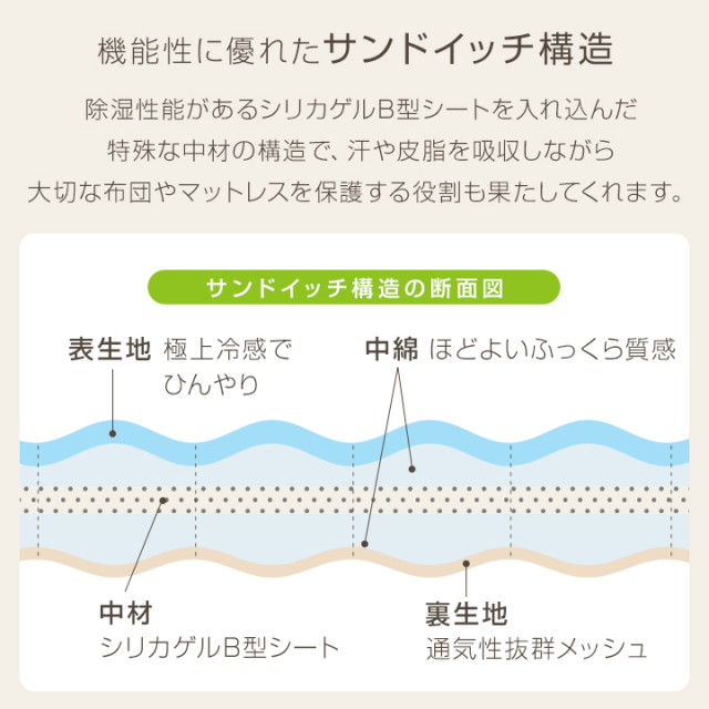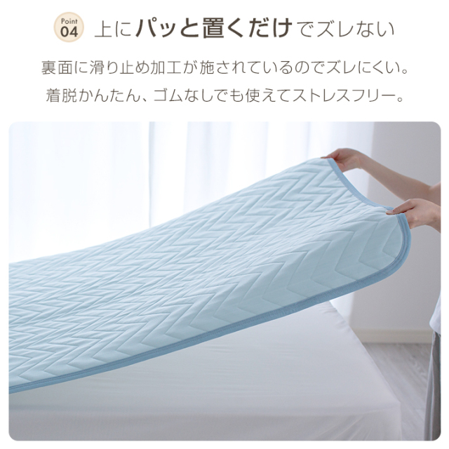 TOP布団カバー ボックスシーツ 敷きパッド シングル 100×200cm 冷感 ひんやり 置くだけ 除湿冷感 除湿 通気性 接触冷感 夏 冷感マット 夏用 敷きパット シーツ ベッドシーツ 寝具 価格: ¥3,480 (税込) 販売期間: カラー: 選択してください 【2~5営業日以内に発送予定】 カフェモカ 【2~5営業日以内に発送予定】グレージュ 【2~5営業日以内に発送予定】アイスグレー 【2~5営業日以内に発送予定】スモークピンク 【2~5営業日以内に発送予定】クールブルー 数量: 個 カラー在庫【2~5営業日以内に発送予定】 カフェモカ○【2~5営業日以内に発送予定】グレージュ○【2~5営業日以内に発送予定】アイスグレー○【2~5営業日以内に発送予定】スモークピンク○【2~5営業日以内に発送予定】クールブルー○ 返品についての詳細はこちら ※ご使用のモニター、デバイス環境により、色の見え方が異なる場合がございます。※また、生産ロットにより同品番でも色味が異なる場合がございますので、ご了承ください。 商品サイズ・組成について (除湿冷感 敷きパッド シングルサイズ) アイテム 寸法 組成 敷きパッド 約100×200cm 表:ポリエチレン 65% ポリエステル 35% 裏:ポリエステル100% 中綿:ポリエステル100% 製造国 :中国