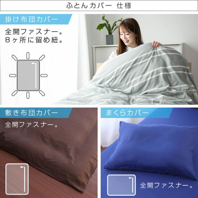 ※枕とカバーセットは掛け布団と一緒に梱包されておりますので掛け布団を広げてご確認ください。